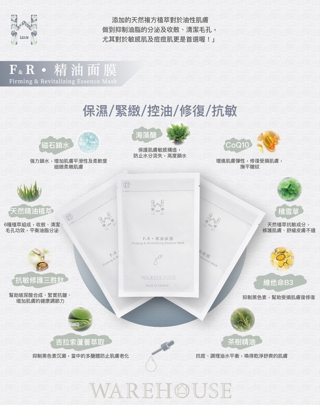 本款F.R精油面膜富含多款天然植萃及精油成分🌱修復肌膚及淨白保濕成效顯著💦