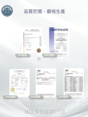CoQ10:增進肌膚彈性,修復受損肌膚,撫平皺紋,阻礙黑色素的形成,並有抗氧化、保護細胞不受自由基的傷害之功效